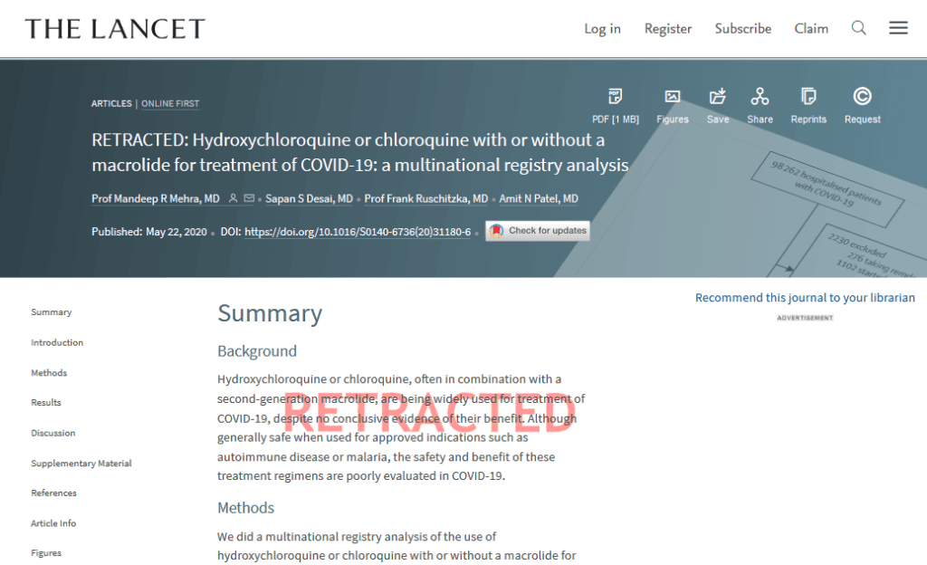 Dr Simone Gold speaks about how LANCET attempted to smear hydroxychloroquine to treat Covid-19, and the World Health Organisation quickly stopped the administratration of this. The LANCET had to retract their paper, but the damage was already done.