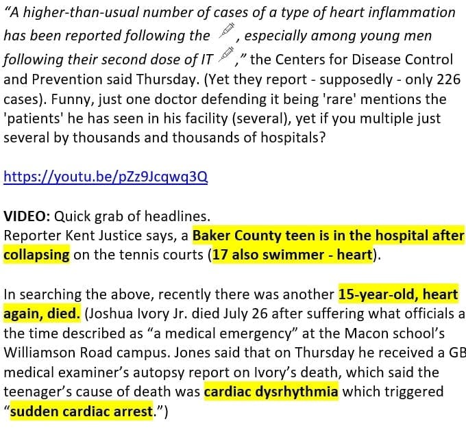 John Stokes, 21, athlete at Tennessee Uni hospitalized with heart inflammation: https://www.yahoo.com/lifestyle/student-athlete-john-stokes-myocarditis-covid-vaccine-002451374.html?guccounter=1