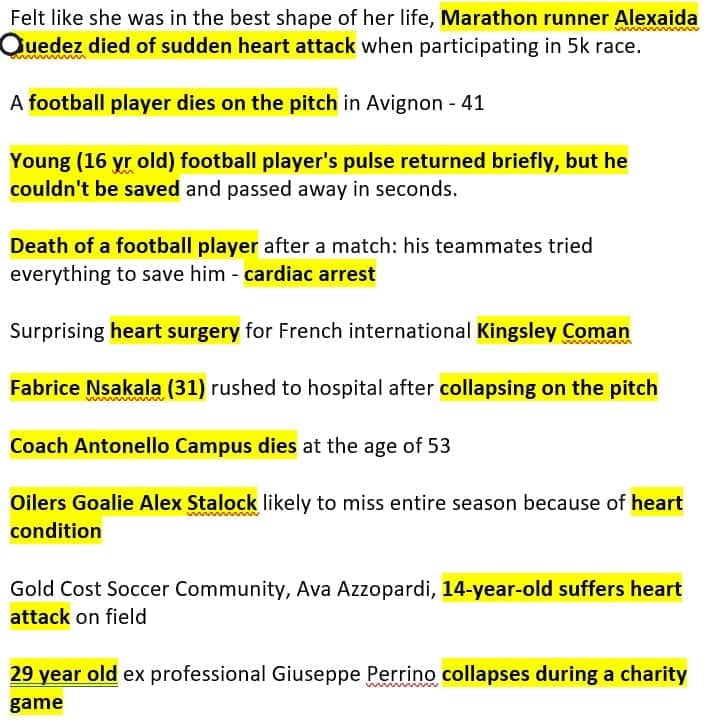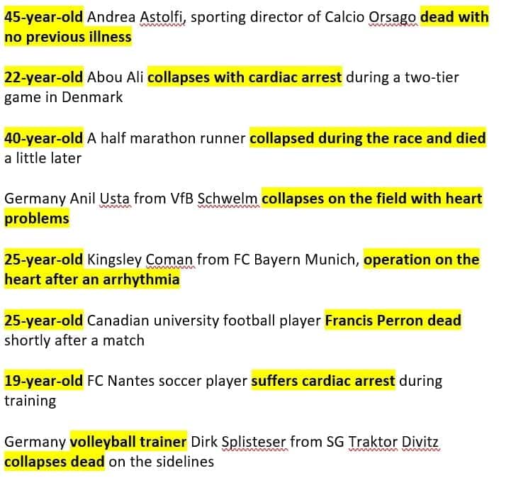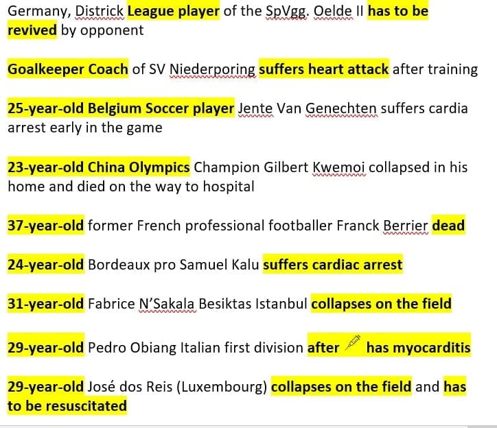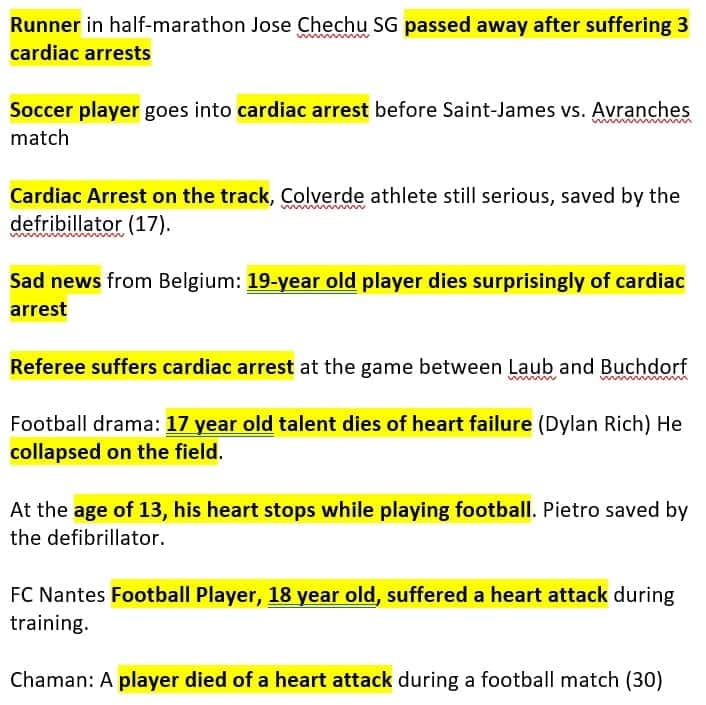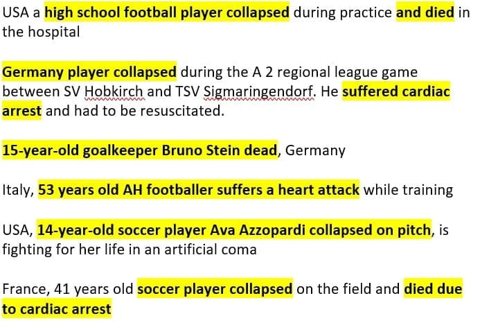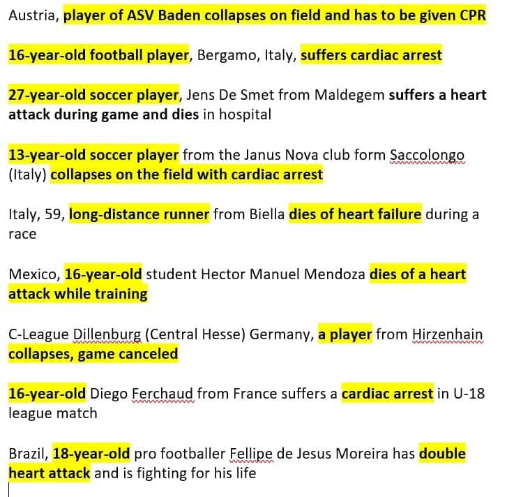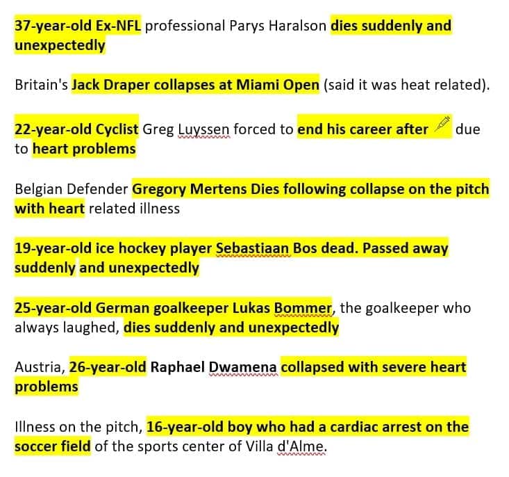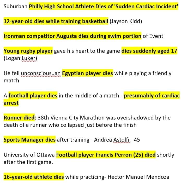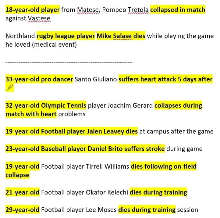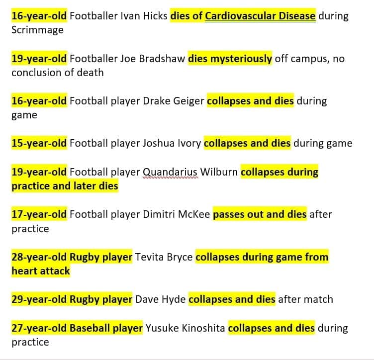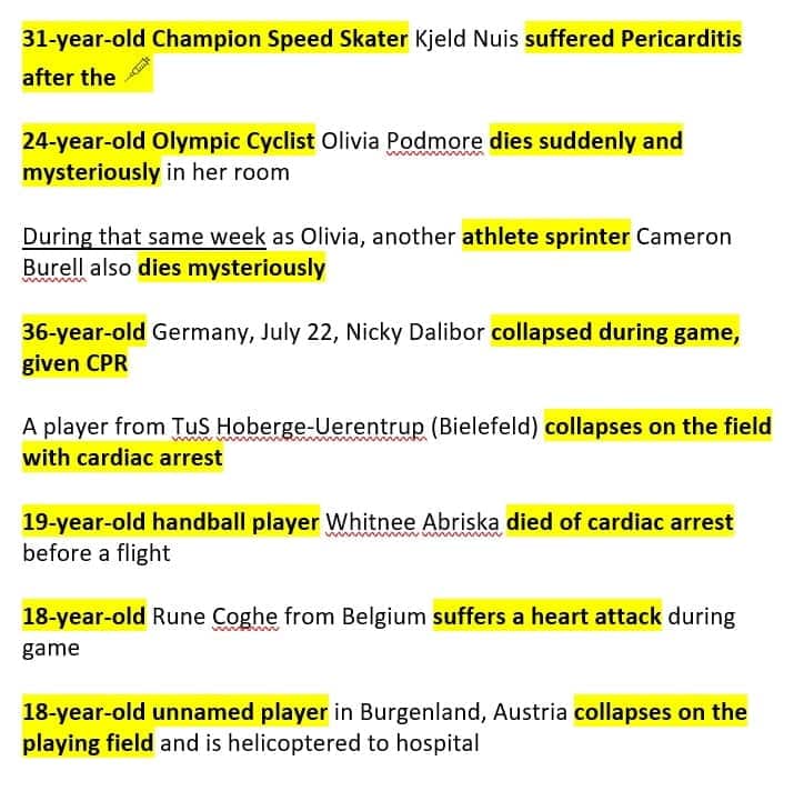 More pictures young athletes post vaccine obtained from a sister in Christ, other athletes may be older. Some sites mention that they took the vaccine, while others do not mention it. Can be conditioning children into taking the vaccine believing that it is safe, but what a tragedy for all of these athletes, and their families.