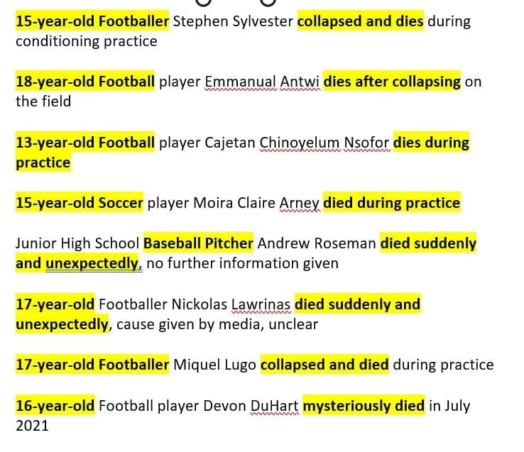 There was no need for these unnecessary deaths of these young athletes post vaccine. For those who continue to believe these LYING LEADERS and medical professionals, it’s no conspiracy. It’s a conspiracy against YOU. They have you fooled. They are out to kill you through these poison pricks. Are you going to let Satan steal, kill and destroy your life? This depopulation agenda is VERY REAL. It’s happening. It’s only going to get worse for those who continue to conform to this unscientific nonsense.