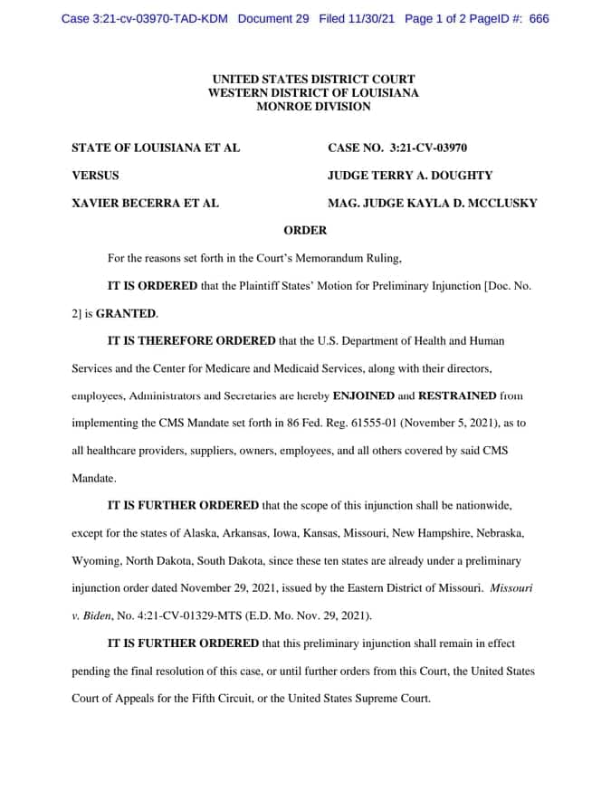 This is an excellent CMS mandate victory for the people, case no: 3:21-CV-03970. Thank you for your mercies Lord.